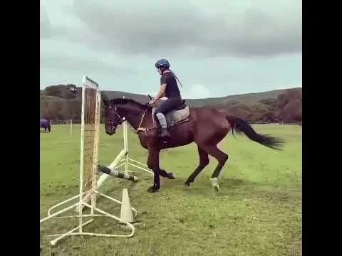 This boy would make a nice riding horse, this boy is a lovely mover and has shown ability to jump, however will need an experienced rider as he is straight off the track and has had a long racing career.